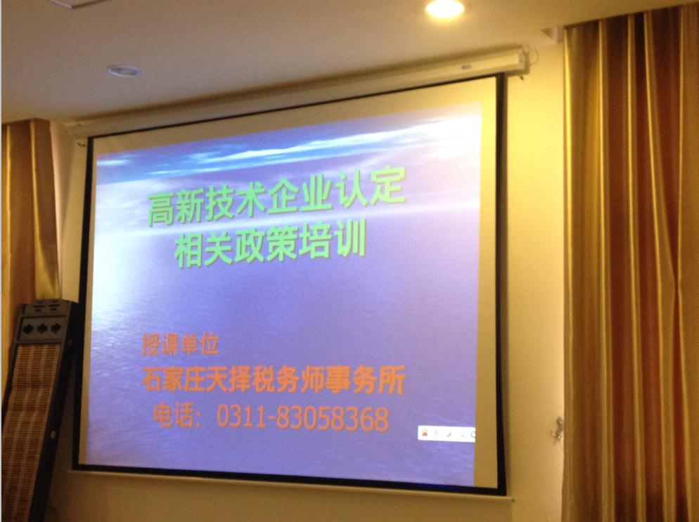 2015年1月14日,成安縣科技局召開了高新技術(shù)企業(yè)認(rèn)定培訓(xùn)會(huì),培訓(xùn)會(huì)由我公司張勤總經(jīng)理親臨現(xiàn)場(chǎng)授課,針對(duì)企業(yè)如何申報(bào)高企、高企優(yōu)惠政策、企業(yè)研發(fā)費(fèi)用加計(jì)扣除等方面進(jìn)行了詳細(xì)的講解。會(huì)上免費(fèi)發(fā)放了天擇稅務(wù)師事務(wù)所印制的“高新技術(shù)企業(yè)認(rèn)定方略”、“稅收政策輯要”等資料。