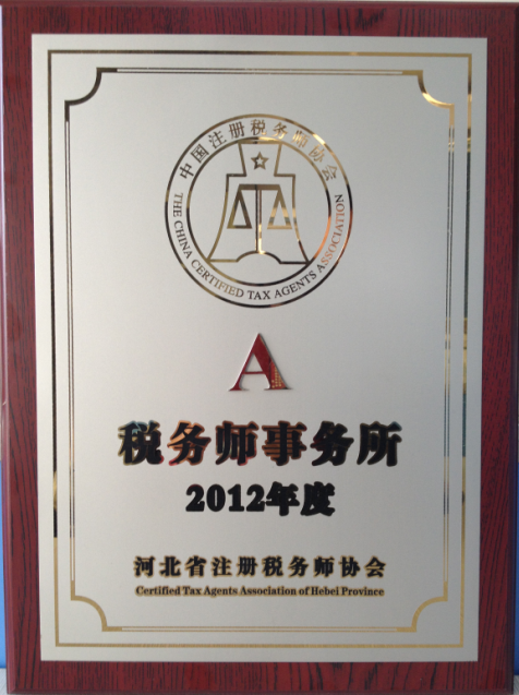 按照中國(guó)注冊(cè)稅務(wù)師協(xié)會(huì)關(guān)于開展稅務(wù)師事務(wù)所等級(jí)認(rèn)定工作要求,河北省注冊(cè)稅務(wù)師協(xié)會(huì)授予我所2012年度A級(jí)稅務(wù)師事務(wù)所認(rèn)定證書。