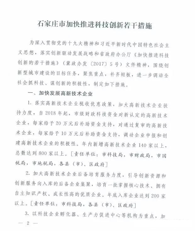石家莊市政府辦公廳關(guān)于印發(fā)《石家莊市加快推進(jìn)科技創(chuàng)新若干措施》的通知